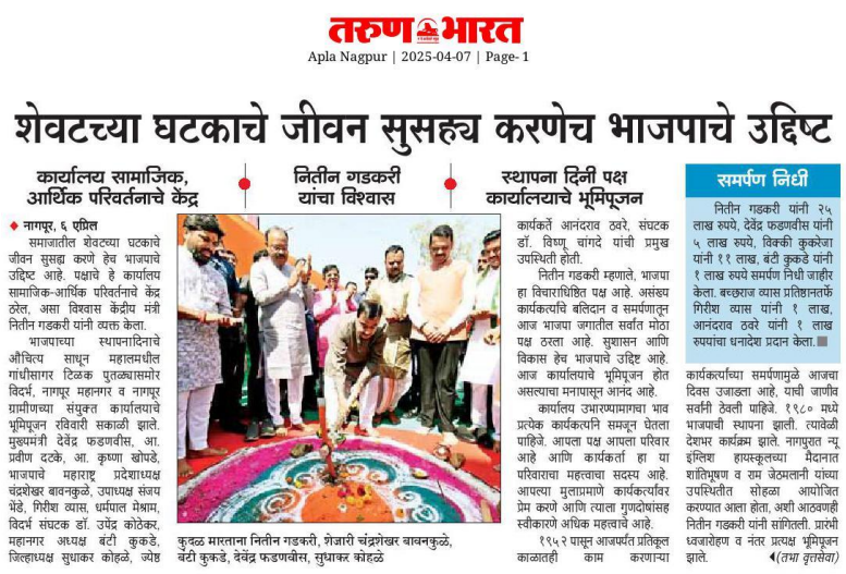 भाजप पक्षाचा स्थापना दिनी पक्ष कार्यालयाचे भूमिपूजन