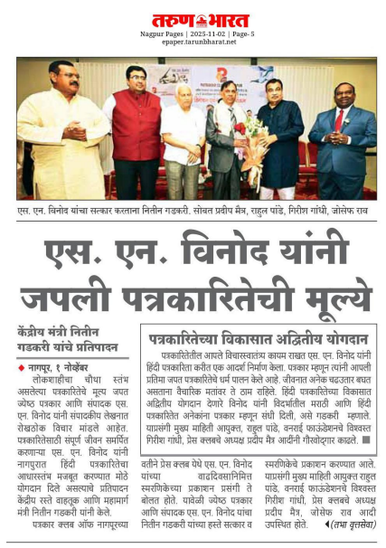 एस. एन. विनोद यांनी जपली पत्रकारितेची मूल्ये